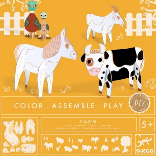 Eenmaal ingekleurd en in elkaar gezet bevat dit knutselpakket genoeg dieren voor een hele boerderij.