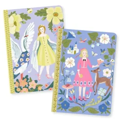 Twee handzame A6 notitieboekjes ‘Sabina Little Notebooks’ uit de lijn Lovely Paper van het Franse merk Djeco met op de voorkant feeërieke illustraties met metallic details. Eén notebook heeft blanco papier en het andere boekje is gelinieerd om te helpen bij het schrijven.