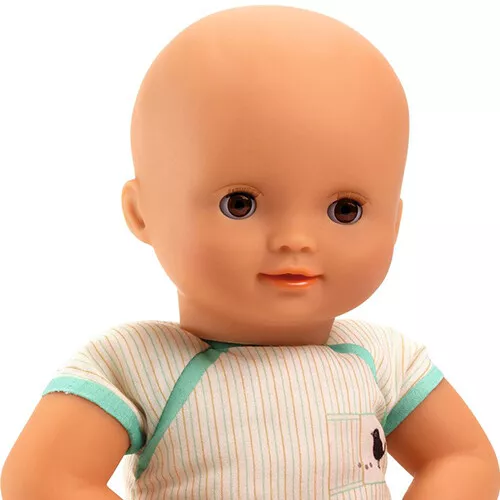 Babypop ‘Green’ van het Franse merk Djeco wordt graag geknuffeld en vertroeteld. De armen, benen en het beweegbare hoofd van de pop zijn gemaakt van vinyl. Het zachte lijfje ziet eruit als een rompertje.