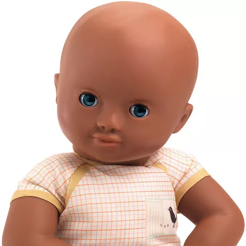 Babypop ‘Yellow’ van het Franse merk Djeco wordt graag geknuffeld en vertroeteld. De armen, benen en het beweegbare hoofd van de pop zijn gemaakt van vinyl. Het zachte lijfje ziet eruit als een rompertje.