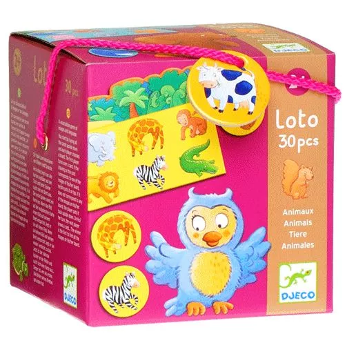 Speel bingo met vriendjes en vriendinnetjes en leer verschillende dieren kennen. Dit bingo spel van het merk Djeco bevat 5 kaarten van 16x14cm en 42 fiches met een doorsnede van 4,5 cm.