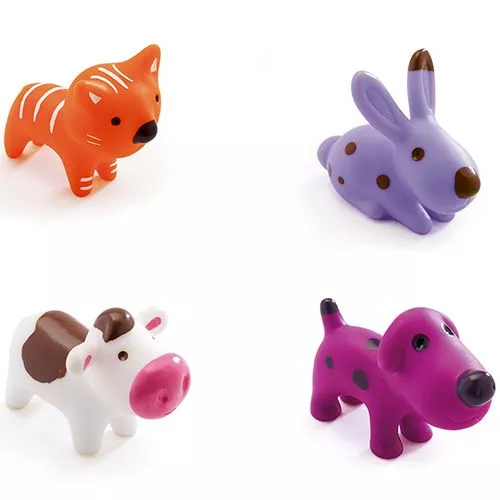 – 4 diertjes: een koe, een konijn, een kat en een hond