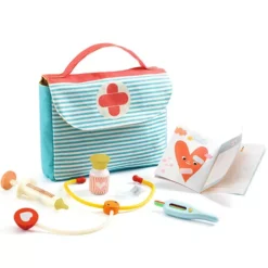 Voelt de babypop zich niet zo lekker? Maak poppen en knuffels snel weer beter met deze doktersset van het Franse merk Djeco.