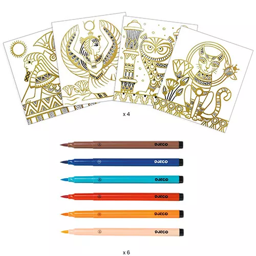 Een kleursetje ‘Artistic Color – Egypt’ van het Franse merk Djeco voor de jonge artistieke tekenaar. Met dit creatieve speelsetje kunnen kinderen ontsnappen naar de tijd van de farao’s.