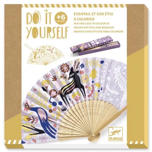 Een vrolijk Do It Yourself inkleursetje ‘Woodland Beauty’ van het Franse merk Djeco om een prachtige waaier zelf in te kleuren. Dit DIY setje bestaat uit een waaier met daarop tekeningen van sierlijke bosdieren die nog ingekleurd moeten worden.