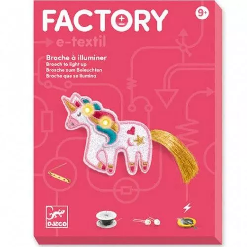 Laat meiden geboeid raken door het wonder van kunst en techniek met dit prachtige knutselpakket. Met het pakket ‘Broche – Sweet Unicorn’ uit de serie Factory Art + Technology van het Franse merk Djeco kan een stoffen broche gemaakt worden met een lichtje. Als het gedragen wordt, licht het op als het beweegt.