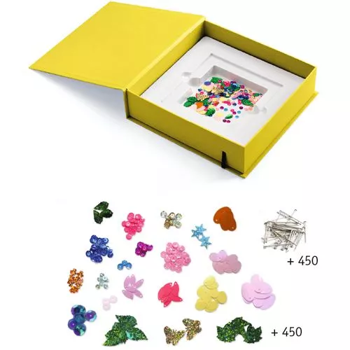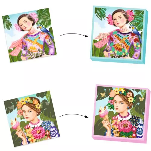 Een schitterende knutselset met lovertjes uit het ‘Atelier Tableaux de sequins’ van het Franse merk Djeco. Maak de kunstwerken compleet door de gekleurde lovers met kleine naaldjes in het schilderij te prikken. Voorzie de dames van een prachtige outfit met sjaal of hoofdtooi.