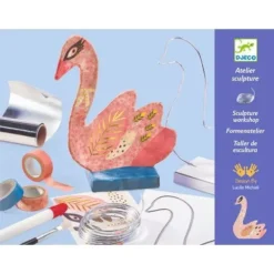 Een uniek knutselsetje ‘Atelier Sculpture – the swan’ van het Franse merk Djeco. Met dit creatieve setje kunnen kinderen met een abstracte vorm, tape en stickers een sierlijke zwaan maken.