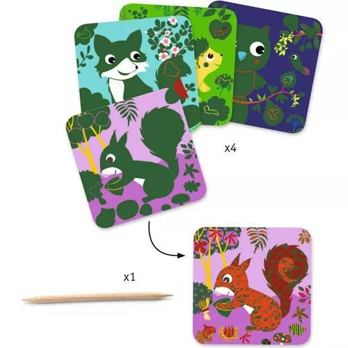 Een wonderlijke krasset ‘Petites bêtes’ van het Franse merk Djeco. Kras voorzichtig de groene laag weg om mooie motieven te maken of leuke verrassingen te ontdekken.
