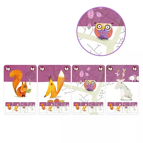 ‘Mini nature’ van het Franse merk Djeco is een klassiek kwartetspel. Doel van het spel is om 7 kwartetten te maken van 4 dieren die in dezelfde natuurlijke omgeving leven. Bijvoorbeeld 4 dieren bij de boerderij of 4 dieren die in de bergen leven.