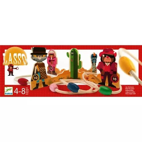Wie kan het beste lassowerpen? Speel het ringenspel ‘Lasso’ van het Franse merk Djeco met vriendjes of vriendinnetjes en vind uit wie de beste cowboy van het Wilde Westen is.