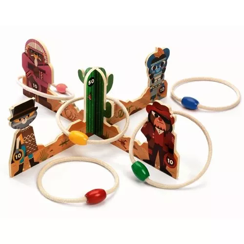 Iedere speler probeert zoveel mogelijk punten te verzamelen door zijn of haar ringen om de houten figuren te gooien. Gooi een lasso om een van de dieren voor 10 punten of vang de cactus voor 50 punten. Door de afstand tot de doelwitten te vergroten of te verkleinen of slechts op ÊÊn kleur te spelen, kan het spelletje moeilijker of makkelijker gemaakt worden.