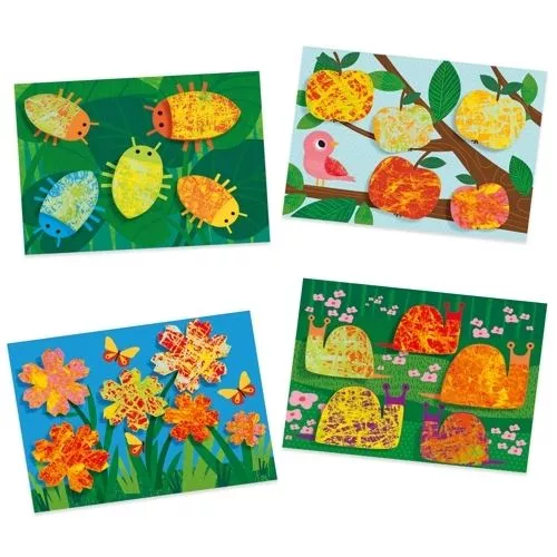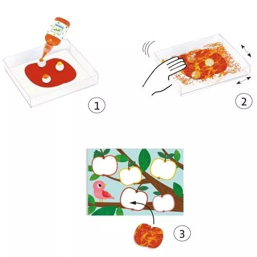 Een origineel knutselsetje ‘Painting with Marbles – Multicoloured Nature’ van het Franse merk Djeco. Met dit creatieve setje kunnen kleine kinderen schilderen met knikkers. Leg een papieren figuur in het plastic bakje samen met drie knikkers, laat een grote druppel verf op iedere knikker vallen en sluit de doos. Schud nu stevig en tadaaaa verrassing!