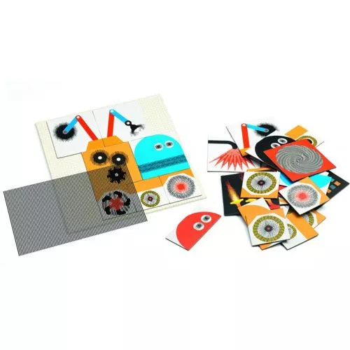 Kinoptik robots van het Franse merk Djeco is een leuke 60-delige set met drie spellen in één.