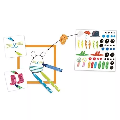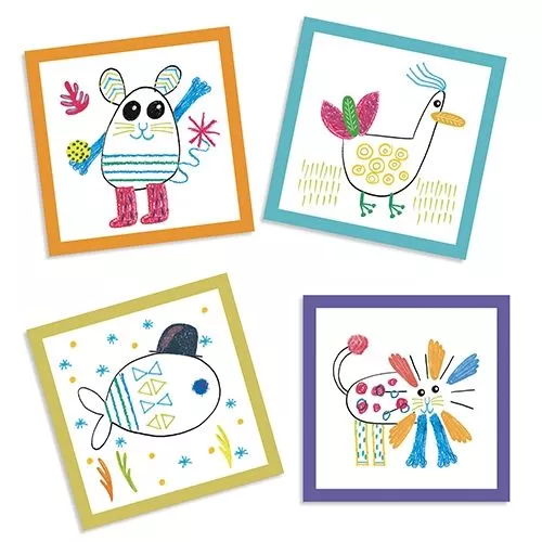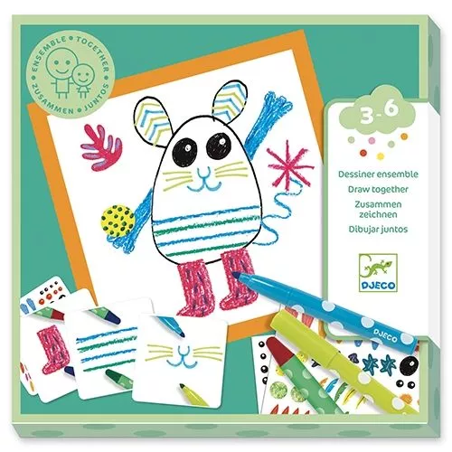 Het tekenspel ‘Funny animals’ voor peuters en kleuters van het Franse merk Djeco is creatief spel met als doelom samen te tekenen!