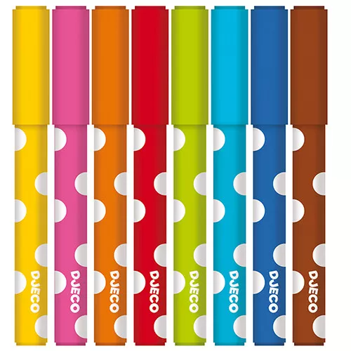 Deze viltstiftenset van het Franse merk Djeco bevat 8 viltstiften speciaal ontworpen voor jonge kinderen.